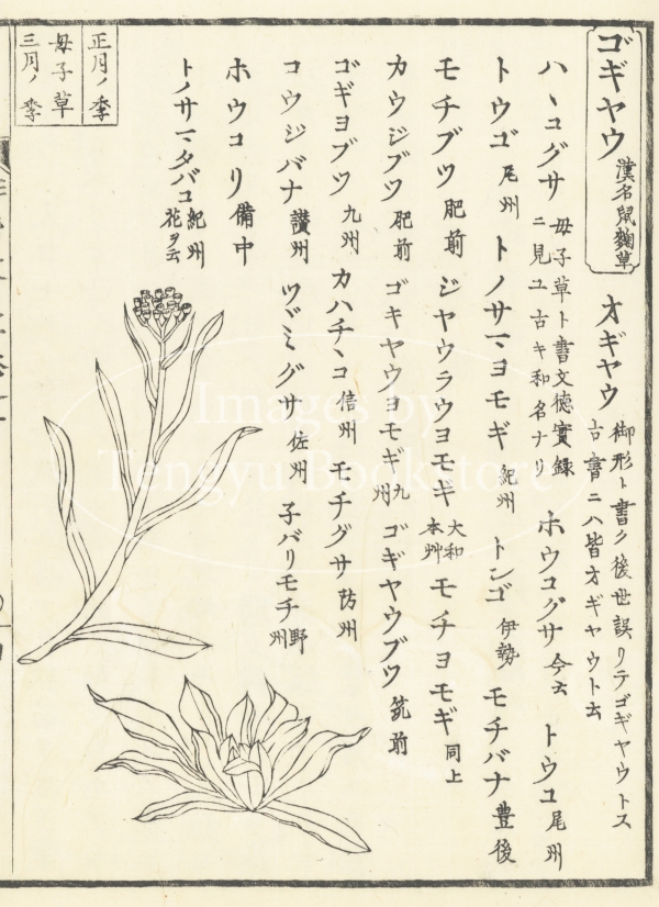 江戸時代の植物図鑑「俳諧季寄是々草」(※本画像は明治時代発行の後印本掲載のもの)からの一枚。