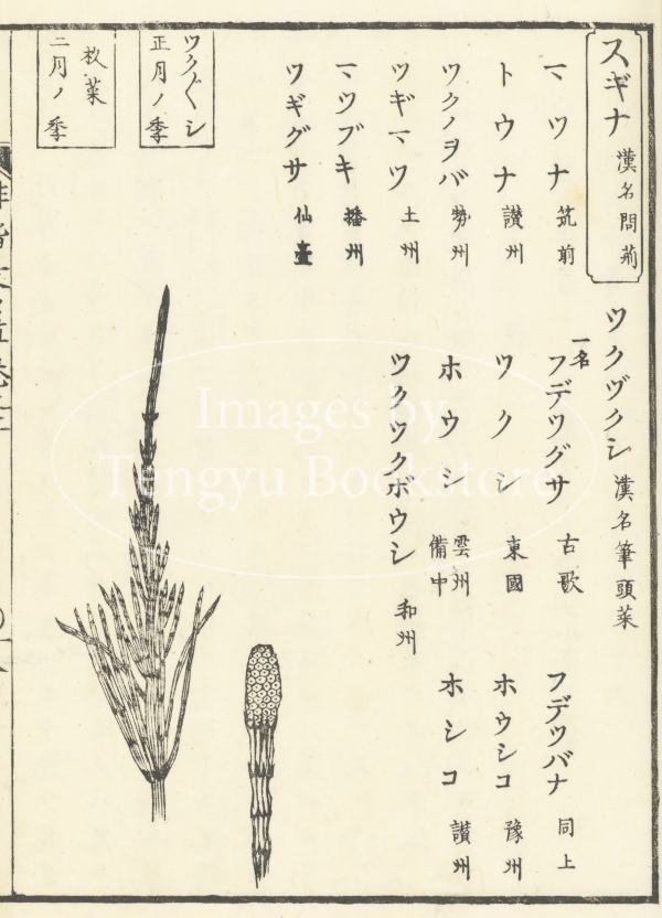 江戸時代の植物図鑑「俳諧季寄是々草」(※本画像は明治時代発行の後印本掲載のもの)からの一枚。