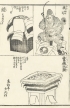 日用品を用いて縁起物や人物、動物、風景など別の形に組み立てて遊ぶ「造物」を集めた絵入本「四季造物趣向種」(しき つくりものしゅこうのたね)の1ページ。