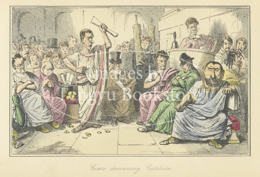 19世紀イギリスの諷刺雑誌「パンチ」の創刊にも携わった作家ギルバート・アボット・ア・ベケット(1811-1856)の歴史書「漫画ローマ史」の挿絵。