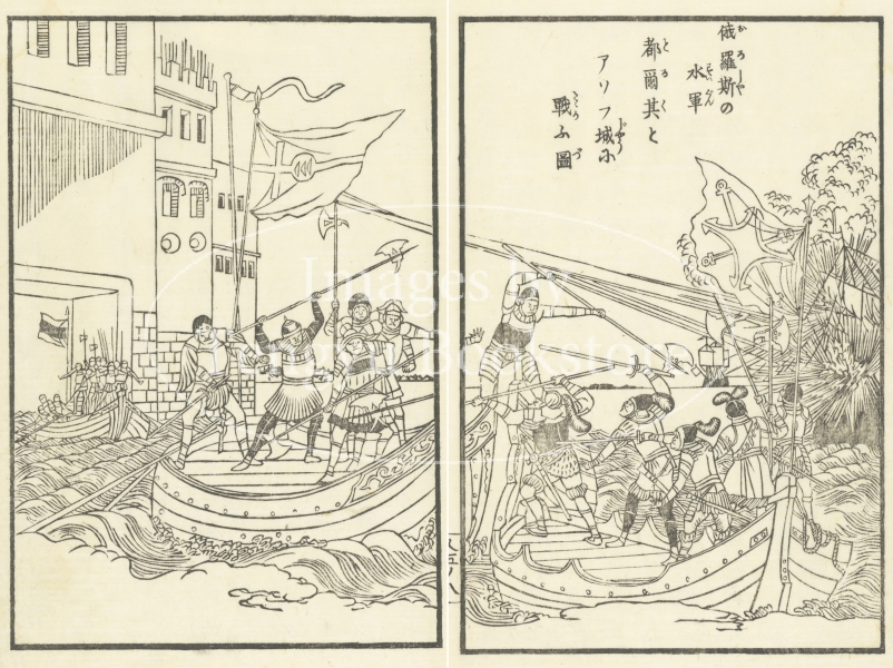 開国間近の幕末に刊行された海外事情報告書「海外人物小伝」より。ナポレオンの伝記を中心に、西洋各国の国王や事件等を挿絵入りで紹介した書籍です。