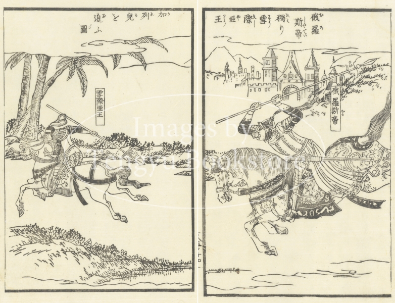 開国間近の幕末に刊行された海外事情報告書「海外人物小伝」より。ナポレオンの伝記を中心に、西洋各国の国王や事件等を挿絵入りで紹介した書籍です。