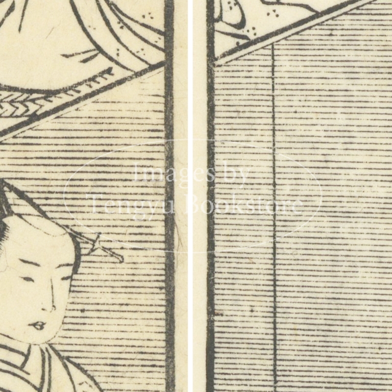 本来は2枚に分けて描かれた作品であるため、色味や図案の整合に若干の不統一があることをご了承ください。