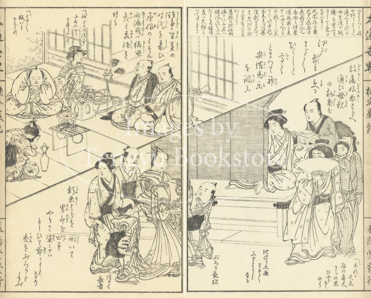 本書は黄表紙の中でも評価の高い作品を集め、原本の挿絵を、明治から大正にかけての浮世絵師 後藤芳景(1858-1922)が模写した複製画を掲載したもの。
