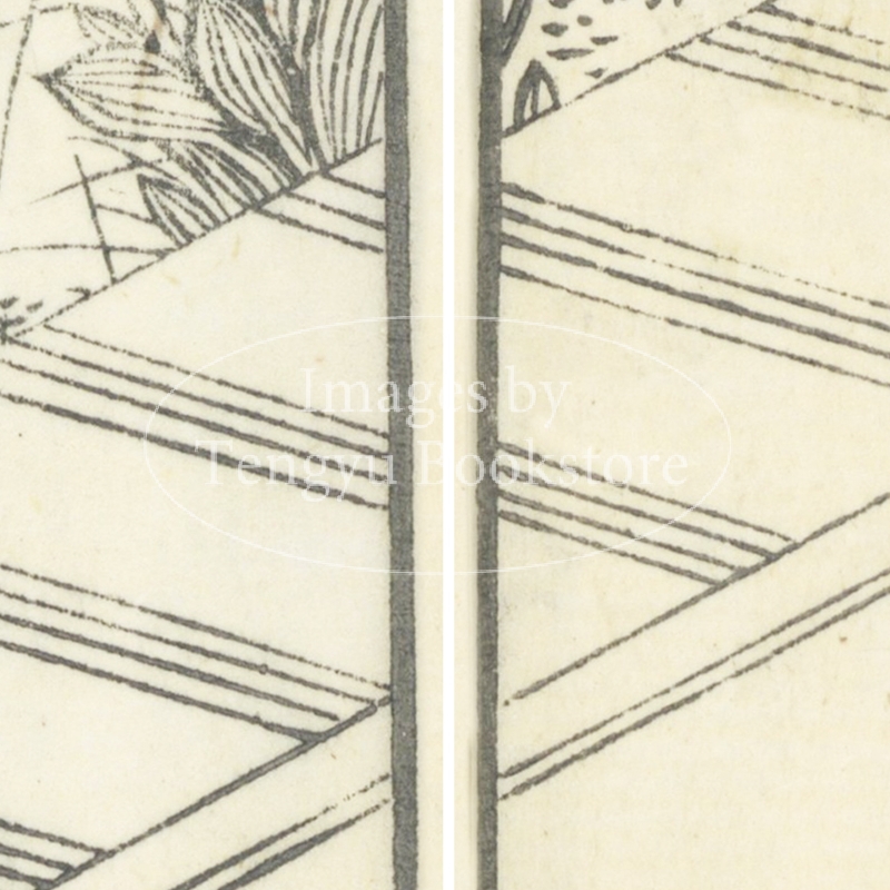 本来は2枚に分けて描かれた作品であるため、色味や図案の整合に若干の不統一があることをご了承ください。