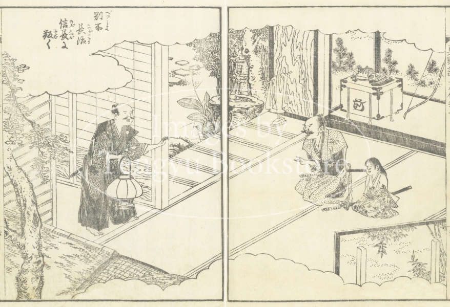豊臣秀吉(日吉丸・木下藤吉郎・羽柴秀吉)の生涯を描いた江戸時代中期の読本(よみほん)「絵本太閤記」中の挿絵。