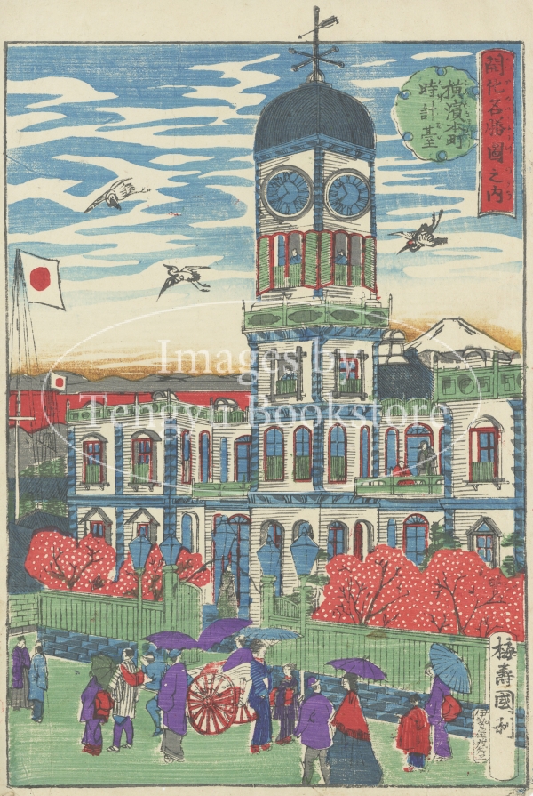 現在の横浜市開港記念会館がある場所に建っていた時計台を描いたもの。