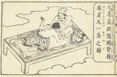 江戸時代後期に刊行された、日本で初めての整骨解説書「骨継療治重宝記」(初版:延享三年(1746) ※本図は文化7年(1810)版掲載のもの)からの一枚。