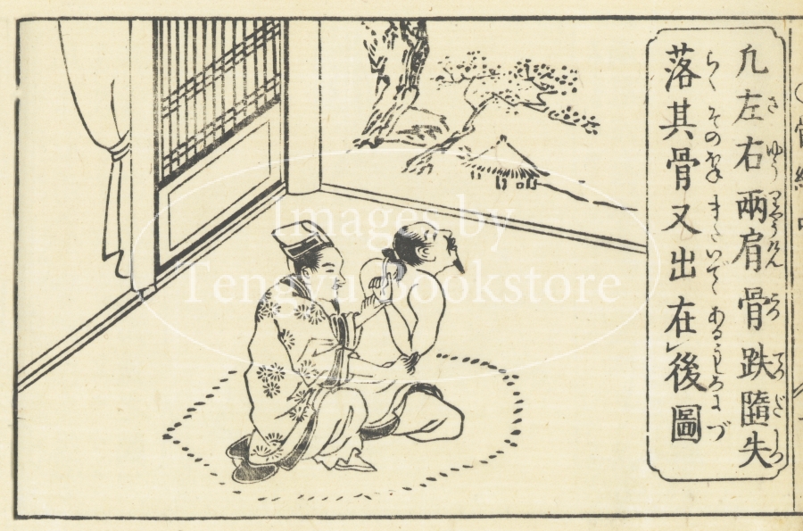 江戸時代後期に刊行された、日本で初めての整骨解説書「骨継療治重宝記」(初版:延享三年(1746) ※本図は文化7年(1810)版掲載のもの)からの一枚。