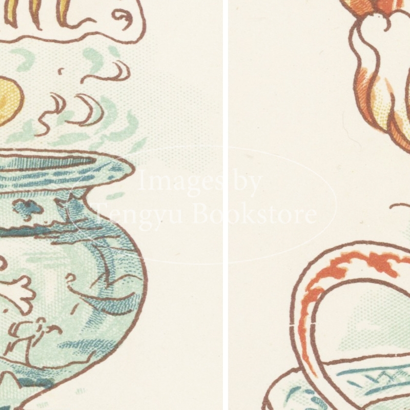 本来は2枚に分けて描かれた作品であるため、色味や図案の整合に若干の不統一があることをご了承ください。