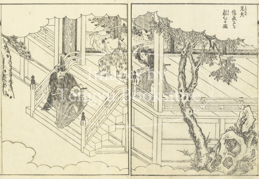 豊臣秀吉(日吉丸・木下藤吉郎・羽柴秀吉)の生涯を描いた江戸時代中期の読本(よみほん)「絵本太閤記」中の挿絵。