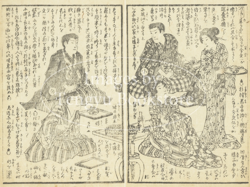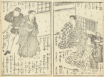 江戸時代後期~明治期の浮世絵師 桜斎房種(歌川房種:生没年不詳)が挿絵を手掛けた明治時代の草双紙「嶋田一郎梅雨日記(しまだいちろうさみだれにっき)」からの一枚。
