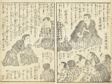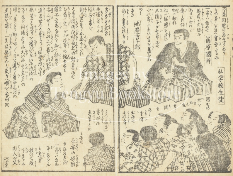 江戸時代後期~明治期の浮世絵師 桜斎房種(歌川房種:生没年不詳)が挿絵を手掛けた明治時代の草双紙「嶋田一郎梅雨日記(しまだいちろうさみだれにっき)」からの一枚。