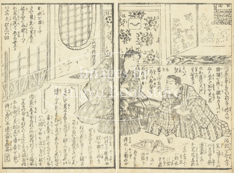 江戸時代後期~明治期の浮世絵師 桜斎房種(歌川房種:生没年不詳)が挿絵を手掛けた明治時代の草双紙「嶋田一郎梅雨日記(しまだいちろうさみだれにっき)」からの一枚。