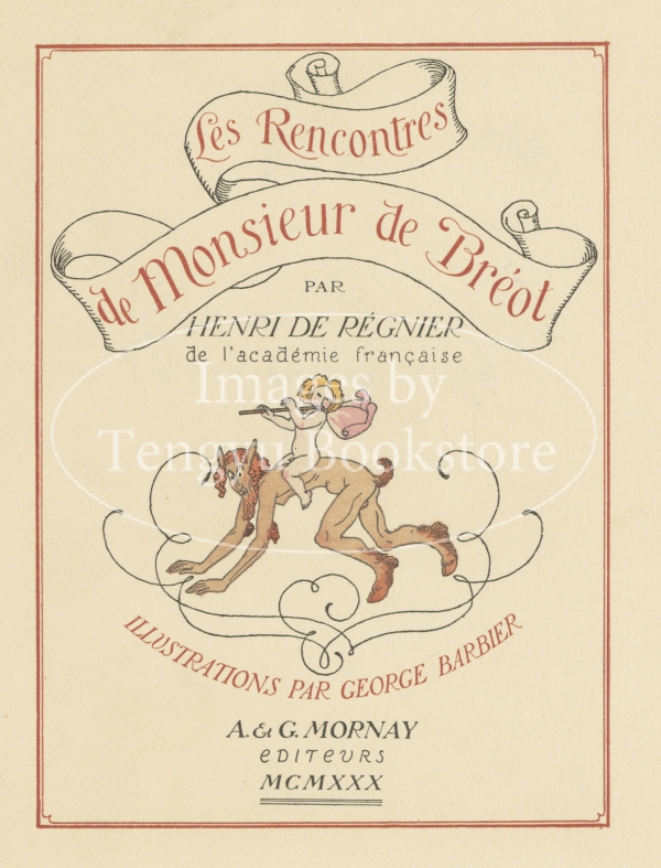 19-20世紀フランスの作家アンリ・ド・レニエ(1864-1936)による恋愛小説「ド・ブレオ氏の色懺悔」限定挿絵本の扉ページ。