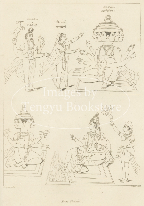19世紀イギリスのインド研究者エドワード・ムーア(1771-1848)の主著「ヒンドゥー・パンテオン」(ヒンドゥー教の神殿)初版の挿絵。
