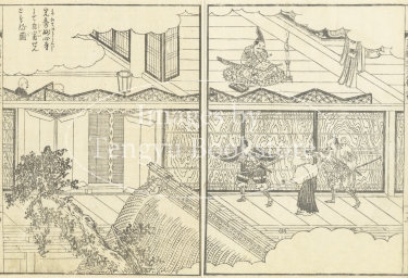 豊臣秀吉(日吉丸・木下藤吉郎・羽柴秀吉)の生涯を描いた江戸時代中期の読本(よみほん)「絵本太閤記」中の挿絵。