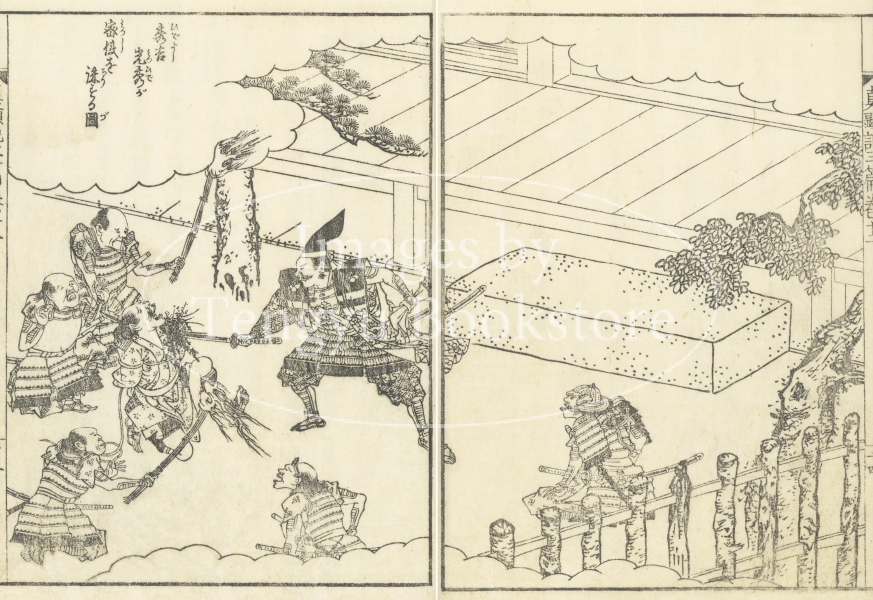 豊臣秀吉(日吉丸・木下藤吉郎・羽柴秀吉)の生涯を描いた江戸時代中期の読本(よみほん)「絵本太閤記」中の挿絵。