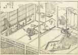豊臣秀吉(日吉丸・木下藤吉郎・羽柴秀吉)の生涯を描いた江戸時代中期の読本(よみほん)「絵本太閤記」中の挿絵。