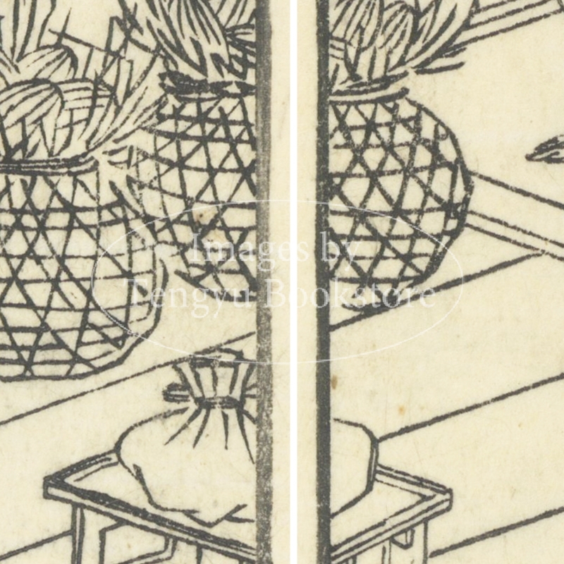 本来は2枚に分けて描かれた作品であるため、色味や図案の整合に若干の不統一があることをご了承ください。