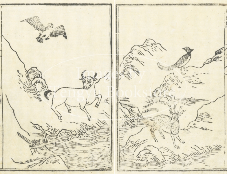 古代中国の地理書「山海経」の江戸期和刻本に掲載された挿絵。