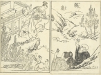 江戸中期〜後期 大阪の浮世絵師 月岡雪鼎(1726-1787)による武者絵本「絵本高名二葉草」より。日本史に名高い力持ちや武者達の武勇を紹介する一冊です。