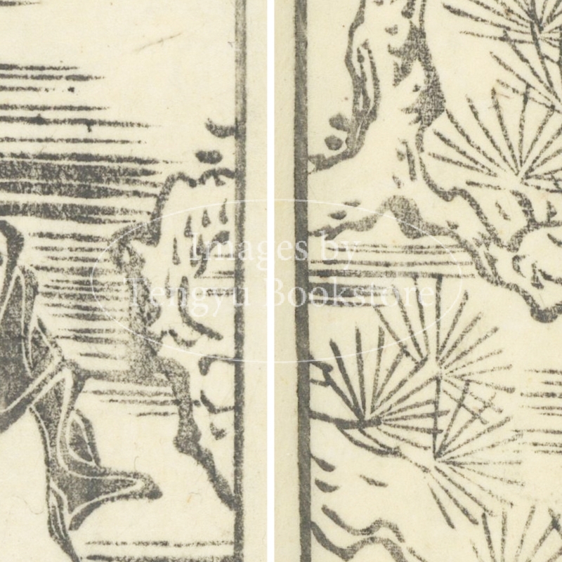 本来は2枚に分けて描かれた作品であるため、色味や図案の整合に若干の不統一があることをご了承ください。