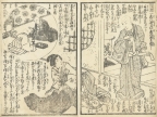 幕末~明治時代の浮世絵師 梅堂国政(三代目 歌川国貞/四代目 歌川国政:1848-1920)が挿絵を手掛けた明治時代の草双紙「綾重衣紋廼春秋(あやがさねえもんのはるあき)」の1ページ。
