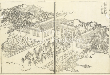 豊臣秀吉(日吉丸・木下藤吉郎・羽柴秀吉)の生涯を描いた江戸時代中期の読本(よみほん)「絵本太閤記」中の挿絵。