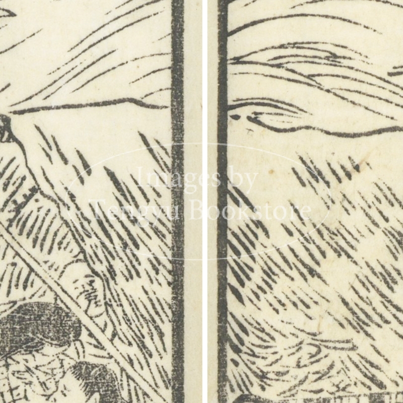 本来は2枚に分けて描かれた作品であるため、色味や図案の整合に若干の不統一があることをご了承ください。