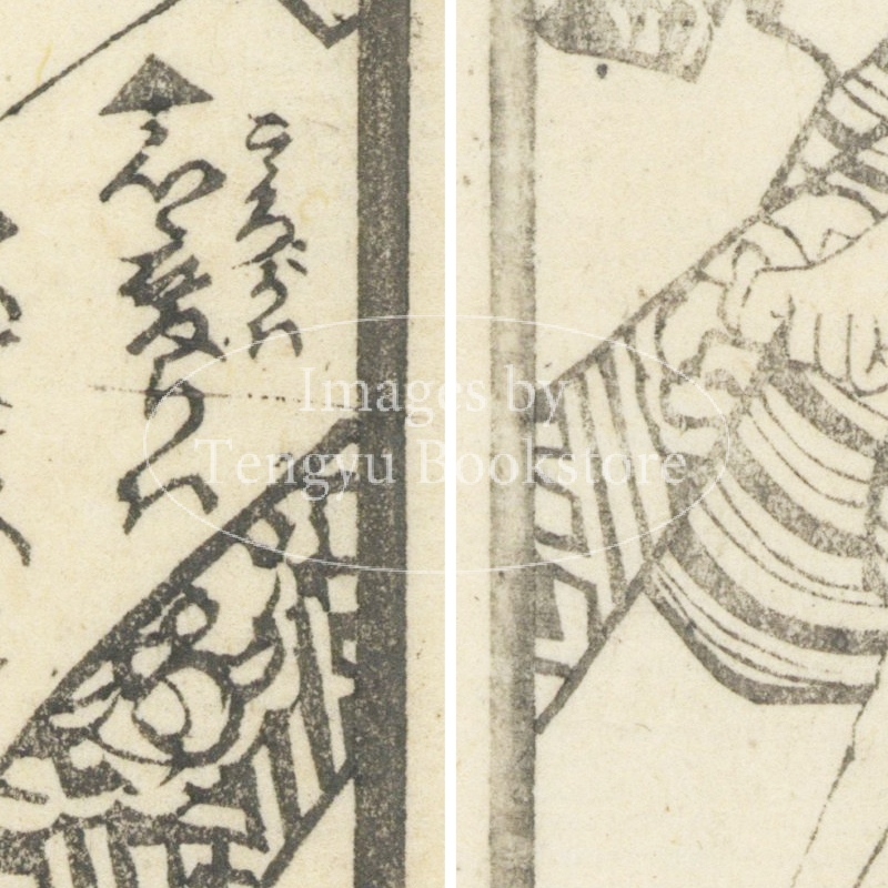 本来は2枚に分けて描かれた作品であるため、色味や図案の整合に若干の不統一があることをご了承ください。
