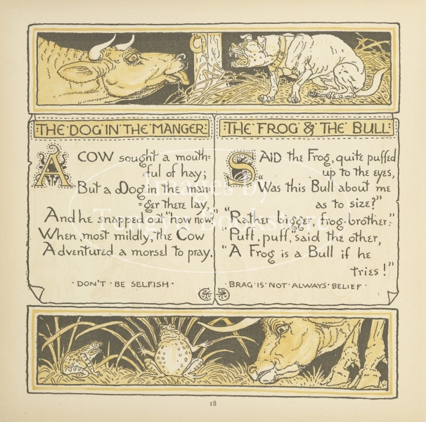 19世紀末イギリスの絵本画家ウォルター・クレイン(1845-1915)の絵本「幼子のイソップ」の1ページ。
