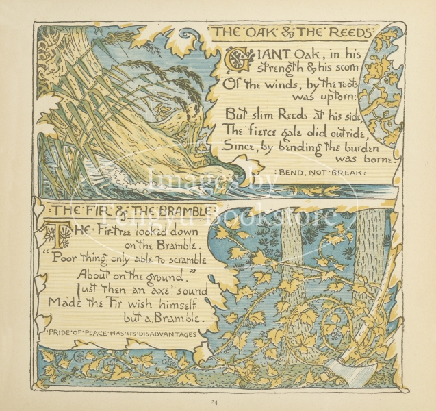 19世紀末イギリスの絵本画家ウォルター・クレイン(1845-1915)の絵本「幼子のイソップ」の1ページ。