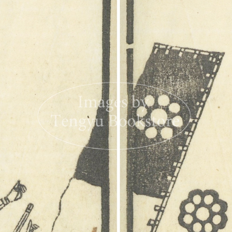 本来は2枚に分けて描かれた作品であるため、色味や図案の整合に若干の不統一があることをご了承ください。