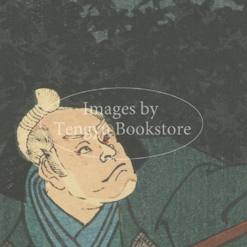 今なお人気の高い、江戸後期を代表する浮世絵師 歌川国芳(1798-1861)による連作浮世絵「殿下茶屋仇討」のうちの一枚。