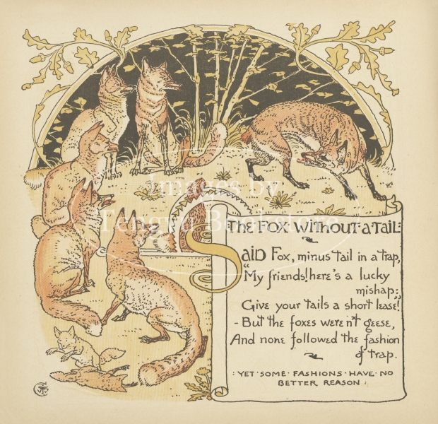 19世紀末イギリスの絵本画家ウォルター・クレイン(1845-1915)の絵本「幼子のイソップ」の1ページ。