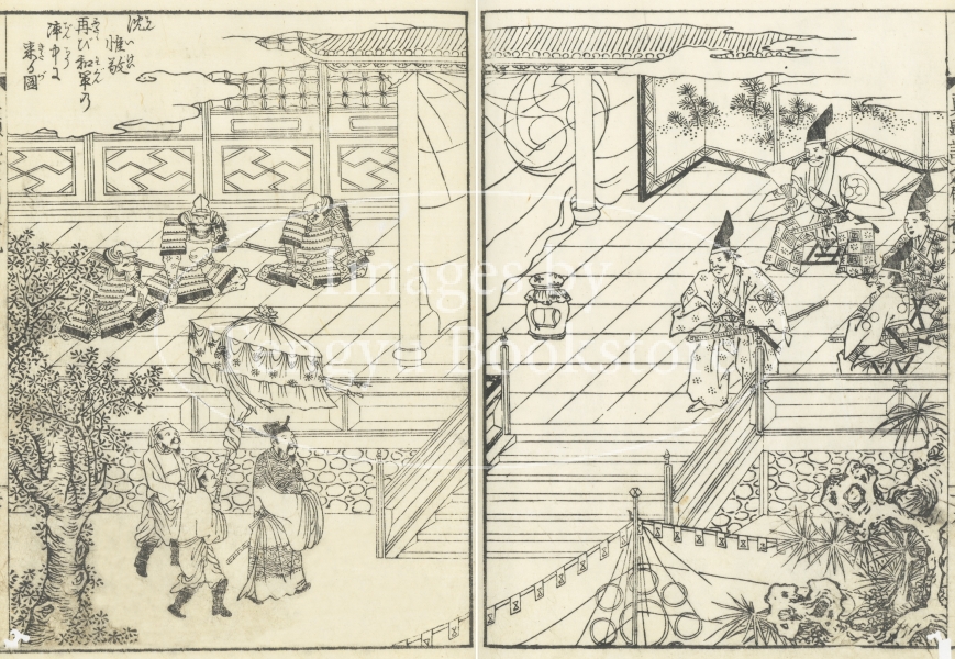 豊臣秀吉(日吉丸・木下藤吉郎・羽柴秀吉)の生涯を描いた江戸時代中期の読本(よみほん)「絵本太閤記」中の挿絵。