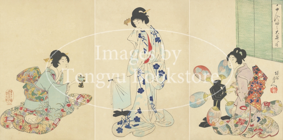 江戸末期~明治の浮世絵師 楊洲周延(ようしゅうちかのぶ:1838-1912)による三枚続の浮世絵。