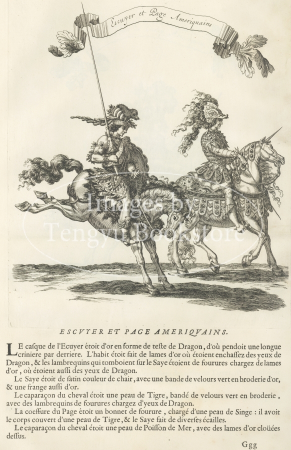 「太陽王」の異名で知られる、17世紀フランスの国王ルイ14世(1638-1715)が1662年に行った宮廷での騎馬パレードの公式記録書の1ページ。