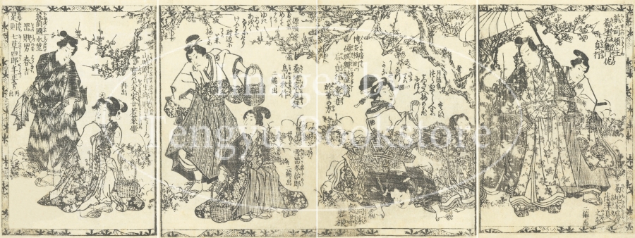 本来は4枚に分けて描かれた作品であるため、色味や図案の整合に若干の不統一があることをご了承ください。