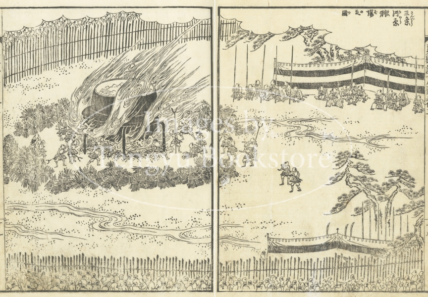 豊臣秀吉(日吉丸・木下藤吉郎・羽柴秀吉)の生涯を描いた江戸時代中期の読本(よみほん)「絵本太閤記」中の挿絵。