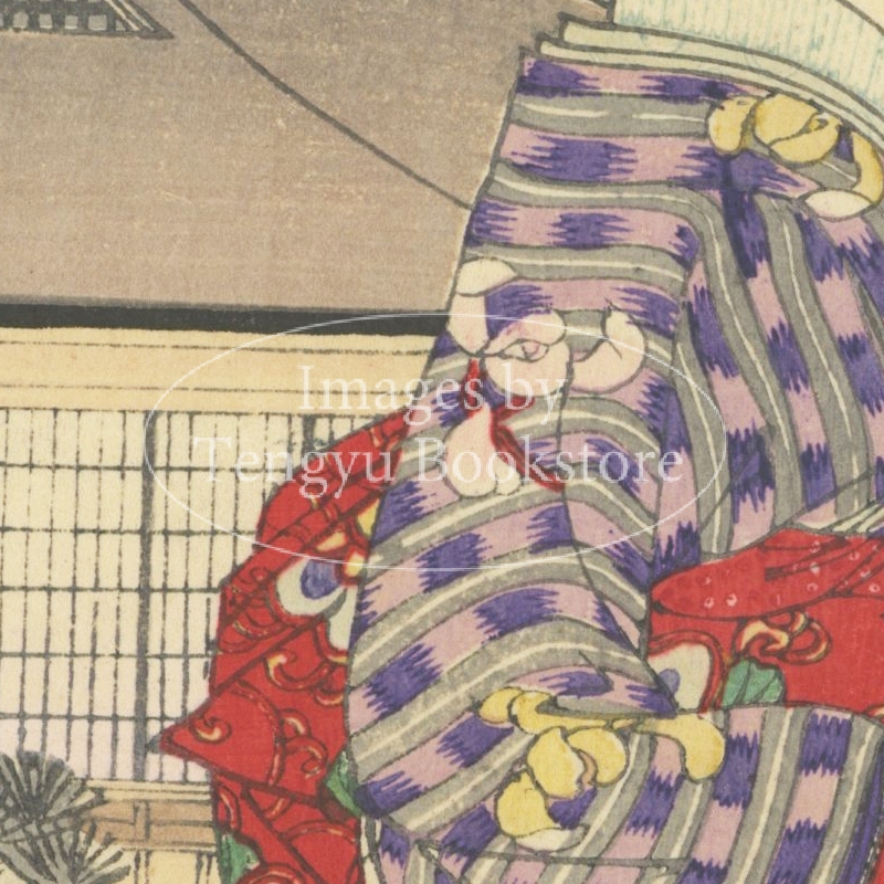 江戸末期~明治の浮世絵師 楊洲周延(ようしゅうちかのぶ:1838-1912)による三枚続の浮世絵。連作美人画「雪月花」のうちの一枚です。