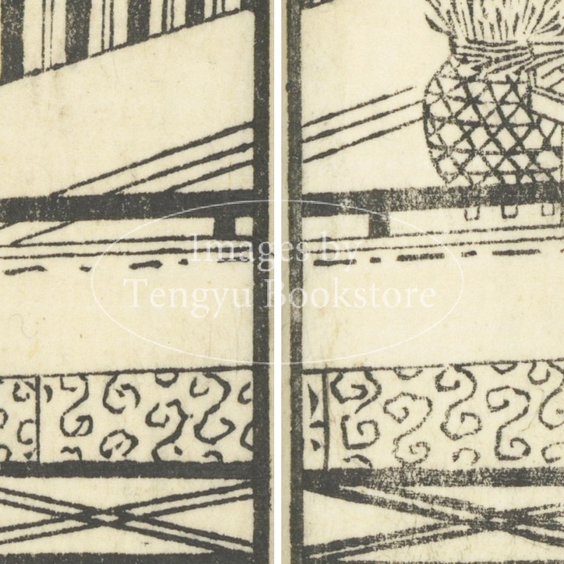 本来は2枚に分けて描かれた作品であるため、色味や図案の整合に若干の不統一があることをご了承ください。