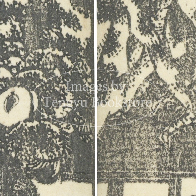 本来は2枚に分けて描かれた作品であるため、色味や図案の整合に若干の不統一があることをご了承ください。