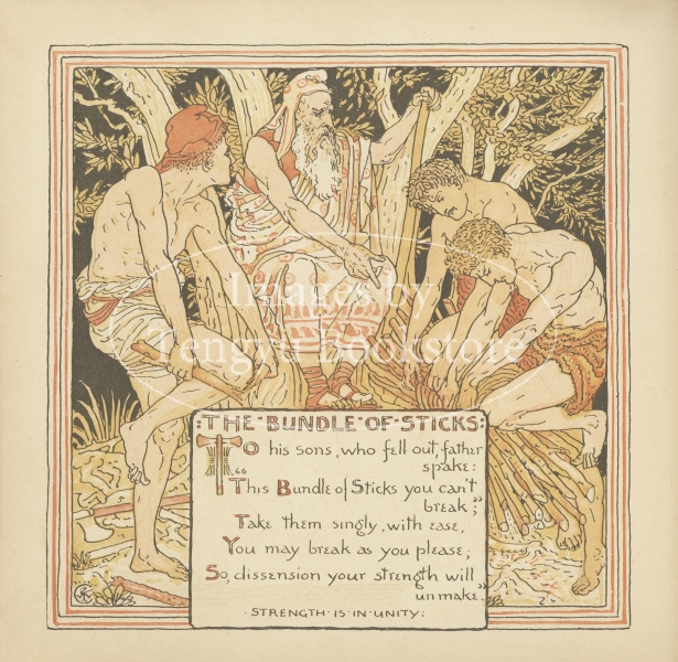 19世紀末イギリスの絵本画家ウォルター・クレイン(1845-1915)の絵本「幼子のイソップ」の1ページ。