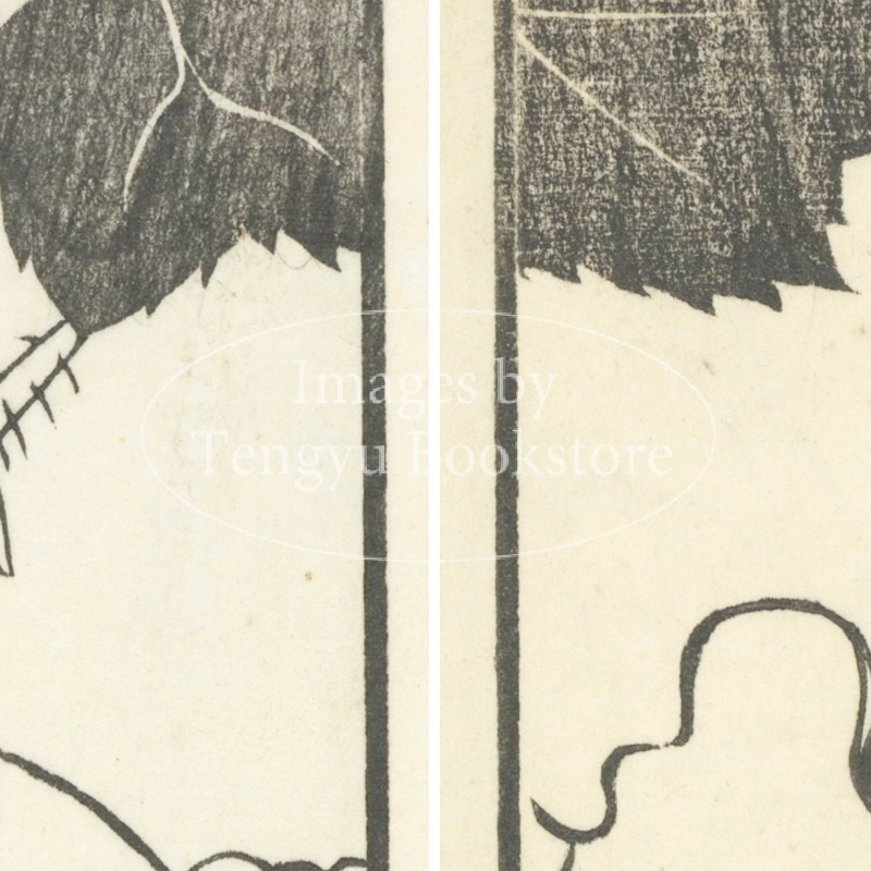 本来は2枚に分けて描かれた作品であるため、色味や図案の整合に若干の不統一があることをご了承ください。