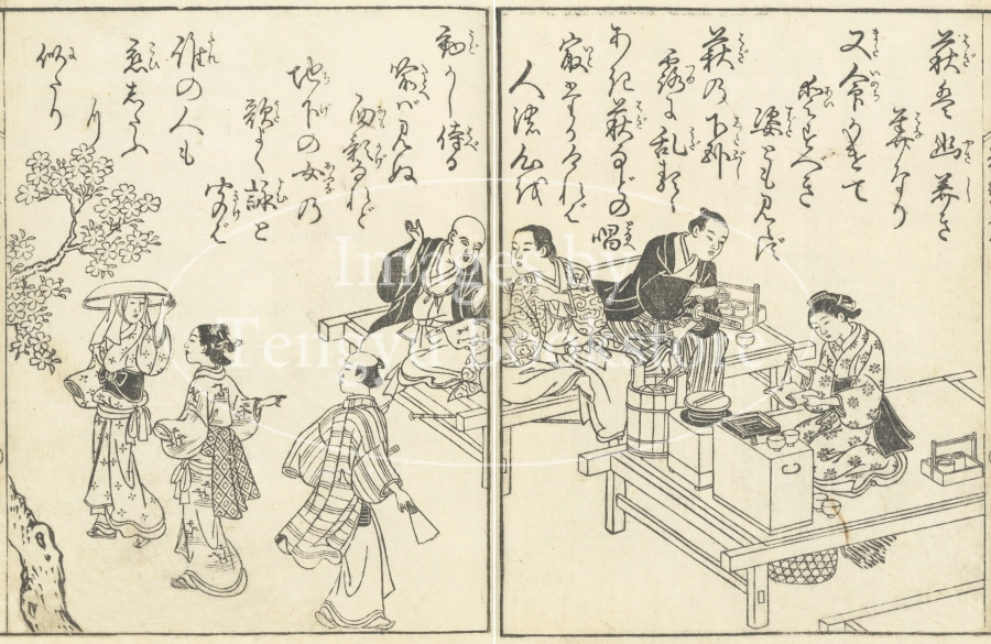 江戸前期から中期にかけて活躍した京都の絵師 西川祐信(にしかわ すけのぶ:1671-1750)による絵本の挿絵。