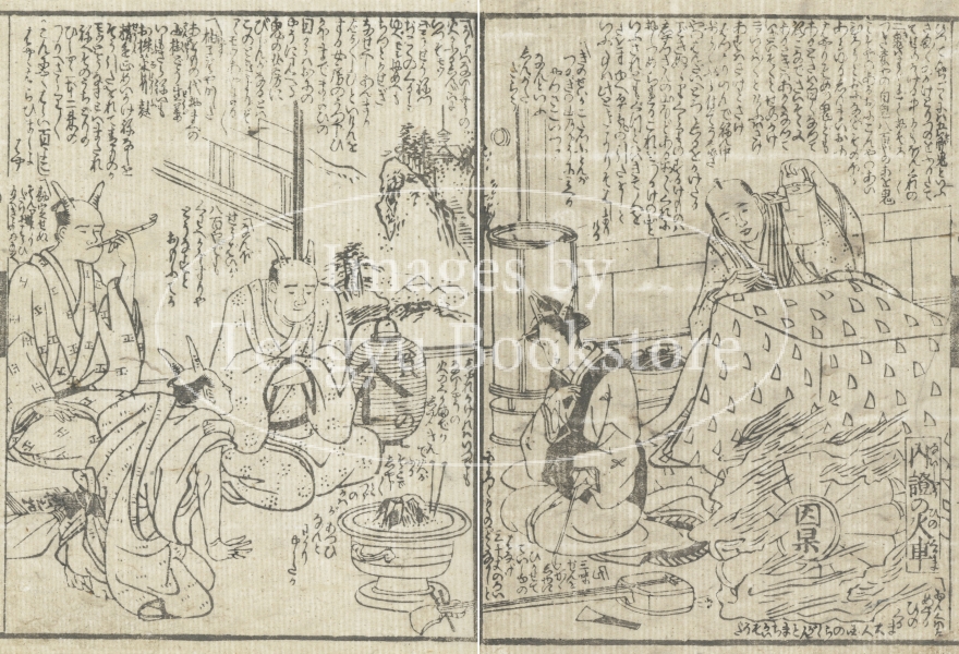江戸時代後期の戯作者 式亭三馬による黄表紙「磨浄頗璃心照子(みがくじょうはり こころのかがみ)」中の挿絵。