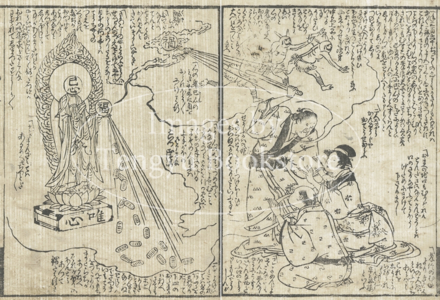 江戸時代後期の戯作者 式亭三馬による黄表紙「磨浄頗璃心照子(みがくじょうはり こころのかがみ)」中の挿絵。