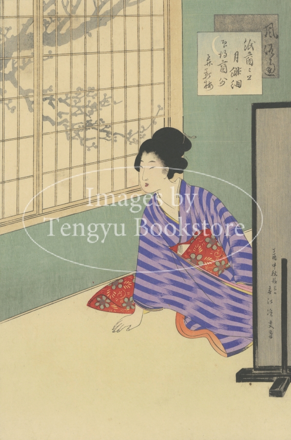 明治時代に挿絵画家としても活躍した浮世絵師、宮川春汀(1873-1914)の代表作である揃物風俗美人画「風俗通」。